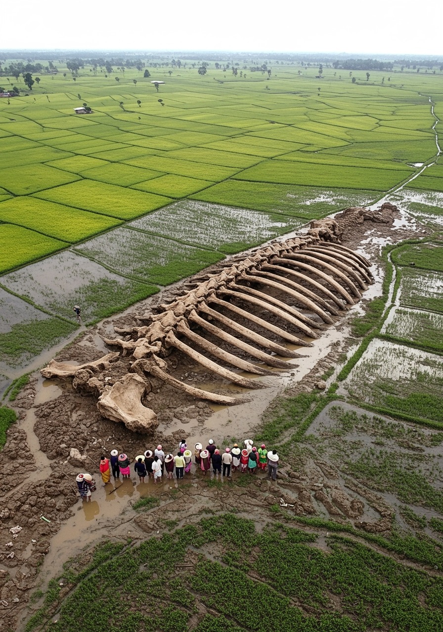 AC. Giant Skeleton Unearthed in Rice Fields Sparks Global Debate