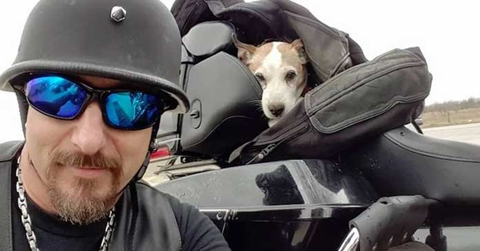 AN.. Biker sees man beating dog on highway so he rescues the canine and makes him his new co-pilot