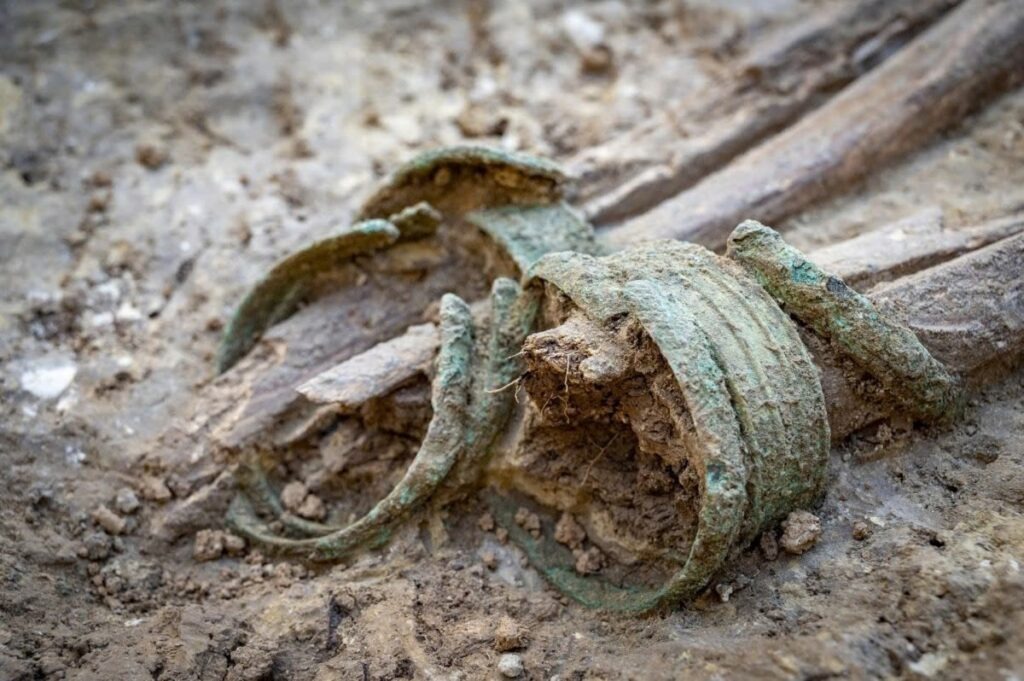 But it was the third burial that truly captivated researchers. Described as the richest grave found at the site to date, it contained a person adorned with a tubular metal torc around the neck, three ankle bangles, and three delicate toe rings — a rare combination in Bronze Age Europe. Alongside these ornaments lay a brooch and a large ceramic urn, all signaling the individual’s elevated status or ceremonial role within their community.