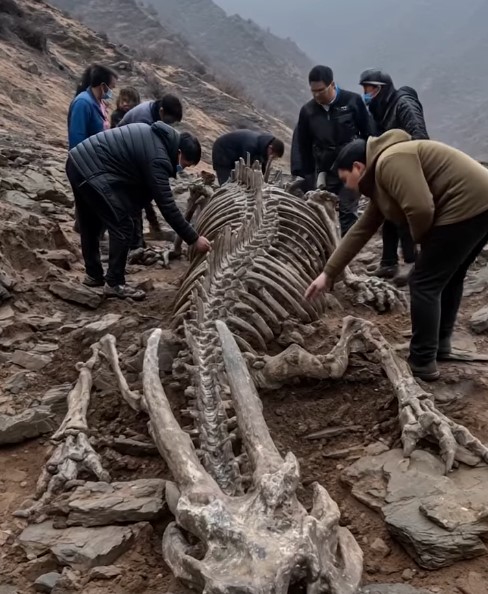 High in the misty mountains of China, archaeologists and local villagers stumbled upon a discovery that has captured global attention: the skeletal remains of a creature so vast, so unusual, that many immediately whispered the word “dragon.”