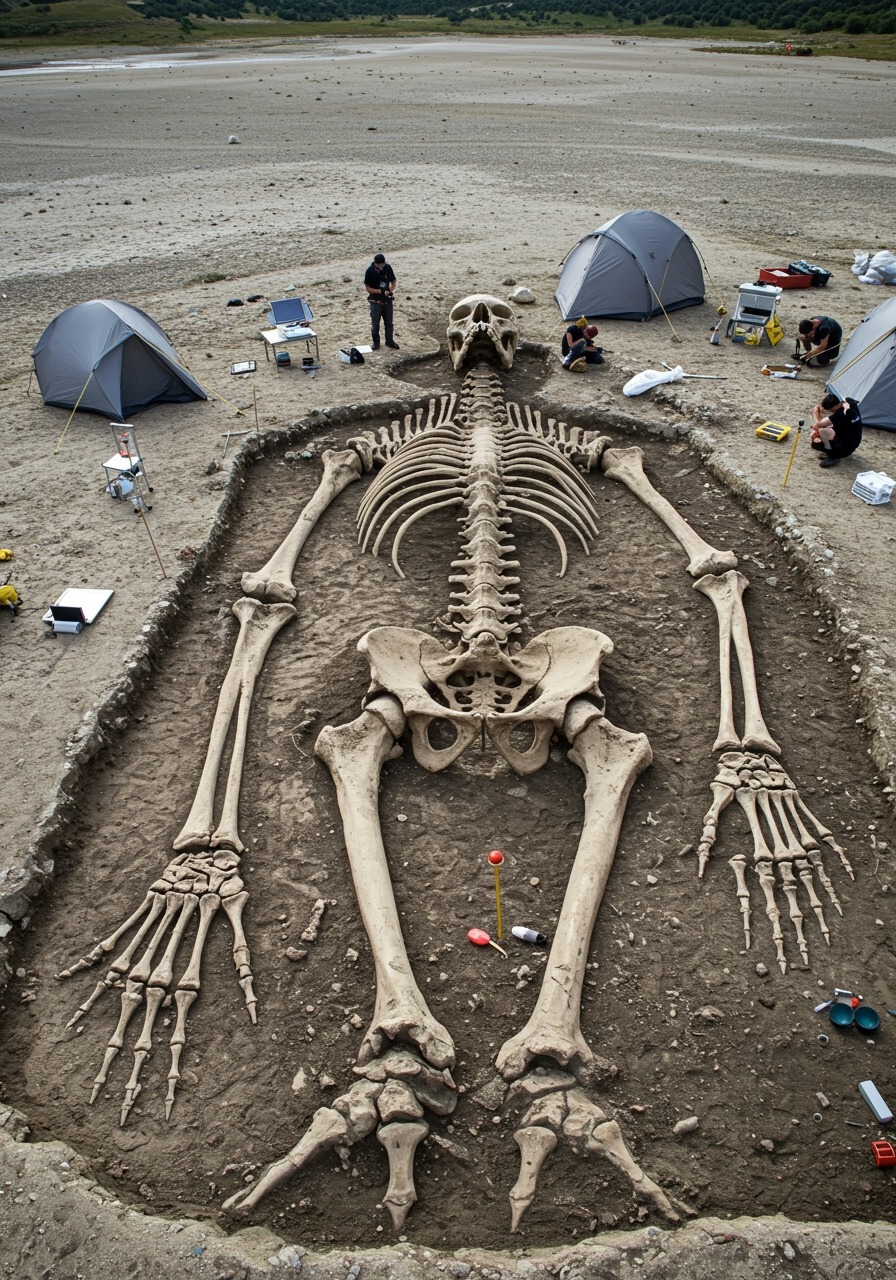 Archaeologists working near the ancient city of Petra, Jordan, have made a discovery that is baffling scientists and historians alike — a colossal humanoid skeleton unearthed within a sealed subterranean vault carved directly into the rose-red sandstone cliffs. The find, nicknamed The Petra Stone Carver, measures an astonishing 80 meters (265 feet) in height, making it one of the largest humanoid skeletal structures ever documented in archaeological history — if verified as authentic.