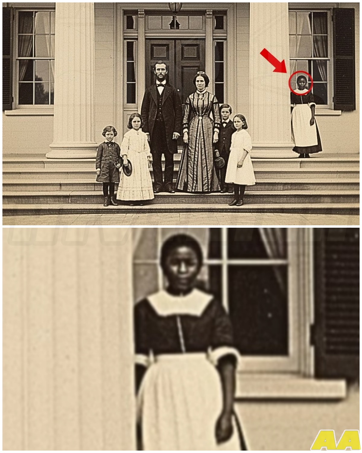 At first glance, it looked like an ordinary 19th-century portrait — a Southern family seated with practiced dignity before the camera, their wealth and status displayed through fine clothing and rigid posture. The father’s hand rested on his wife’s shoulder, their children arranged neatly at their sides. Behind them, almost invisible in the background, stood a young Black boy — silent, small, and dressed in plain garments.