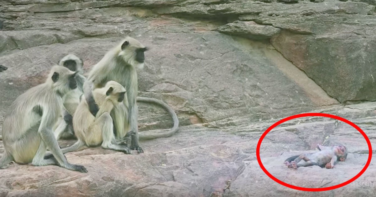 The langurs approached it again, surrounding the little figure in a quiet circle. They gently held it, pressed it close, and appeared to check for signs of responsiveness. Their movements reflected a form of communal caregiving—an instinctive behavior seen in many primate species.