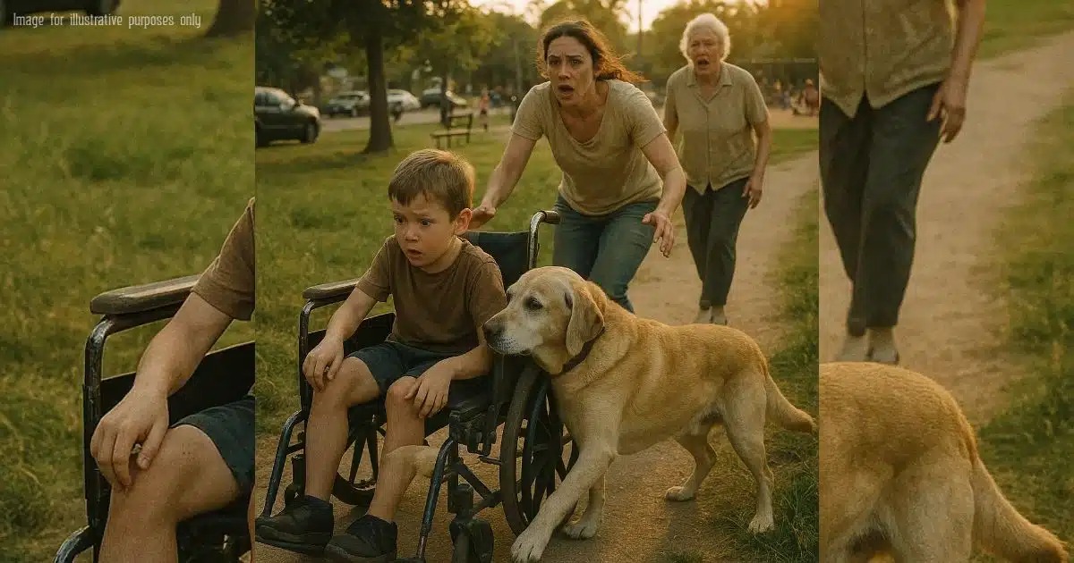 Buddy moved slow but steady, the way old ships do. I walked beside him with the leash slack, rummaging for tissues I’d already used. Up ahead, a boy in a wheelchair rolled toward the slope, his mother juggling a tote, a water bottle, and a guilty look that said she hadn’t had time to breathe all day.