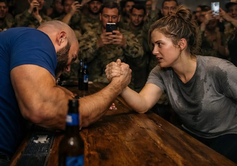Ми сіли за стійку. Його рука лягла на стіл — масивна, сильна. Моя — навпроти, спокійна й розслаблена. Хтось швидко посунув пляшки, хтось поклав серветку під лікті.